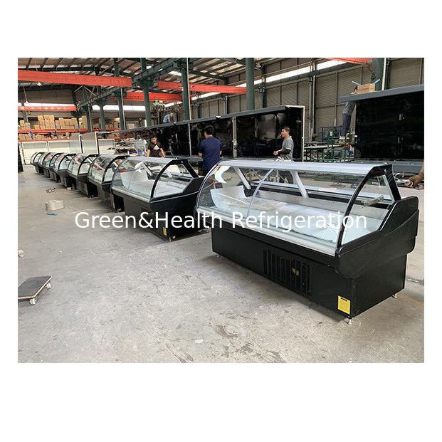 2घुमावदार मांस प्रदर्शन कैबिनेट में एक पैनोरमिक आर्क के आकार का टेम्पर्ड ग्लास फ्रंट है, जो एक सुरुचिपूर्ण,स्वच्छतापूर्ण संलग्नक जो उत्पाद की दृश्यता को बढ़ाता है और प्रसंस्करण और खुदरा वातावरण के लिए स्वच्छता मानकों को पूरा करता है.