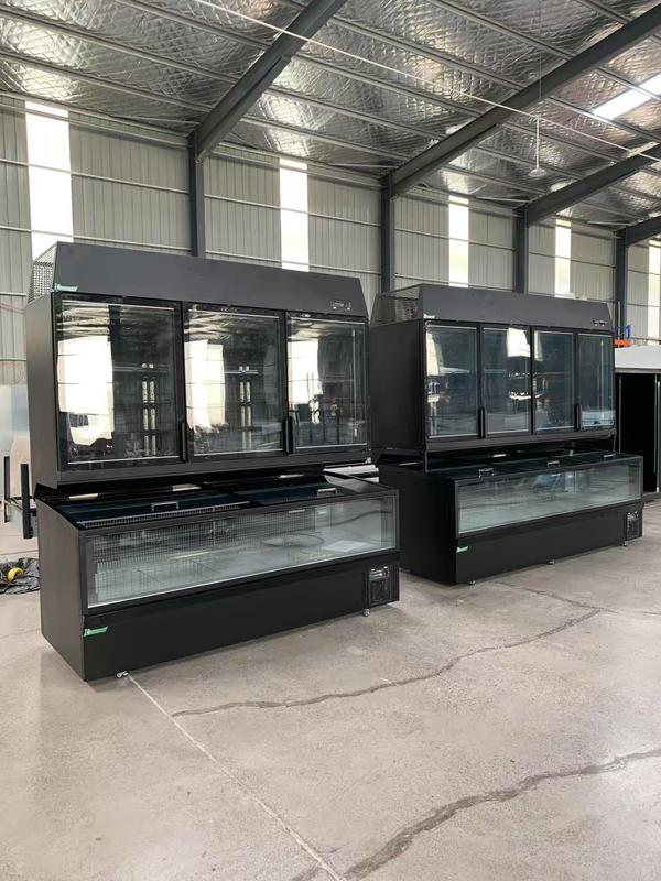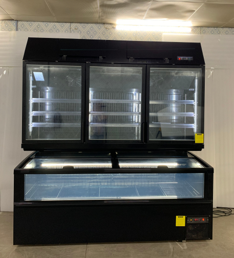 संयुक्त डिस्प्ले फ्रीजर टॉप ग्लास डोर और आइलैंड चेस्ट फ्रीजर के साथ - स्पेस-सेविंग प्लग-इन कमर्शियल रेफ्रिजरेशन